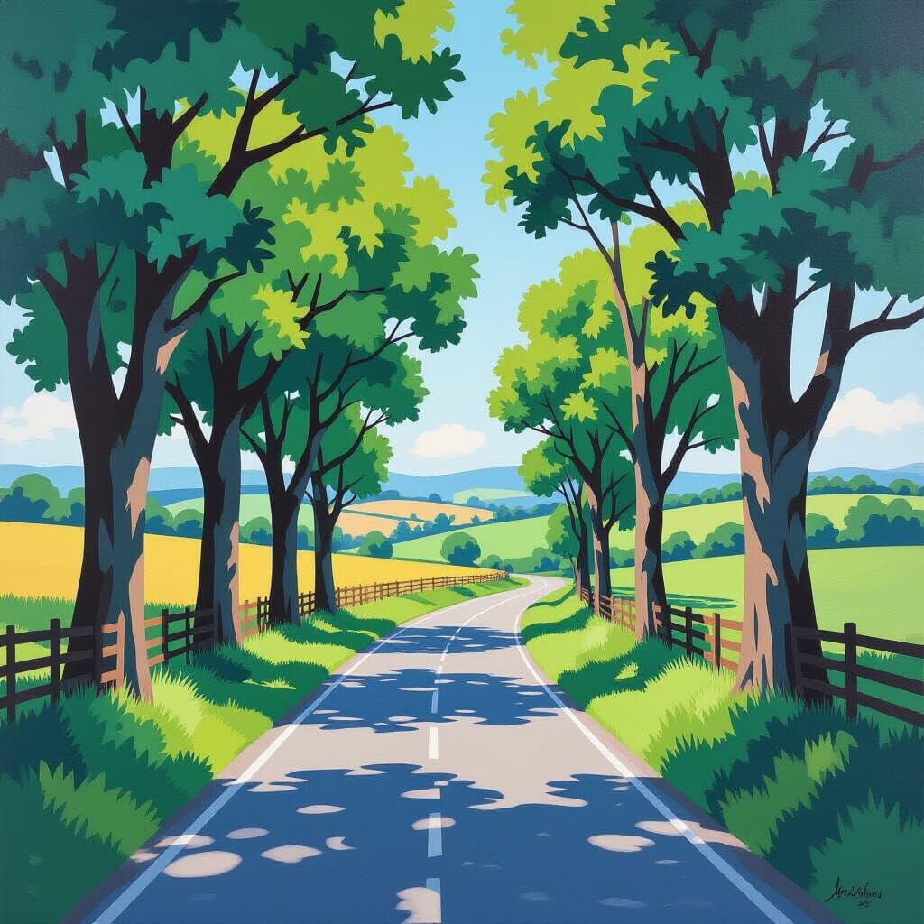 Easily generate unique acrylic landscape paintings of country lanes and English countryside with our free AI tool.