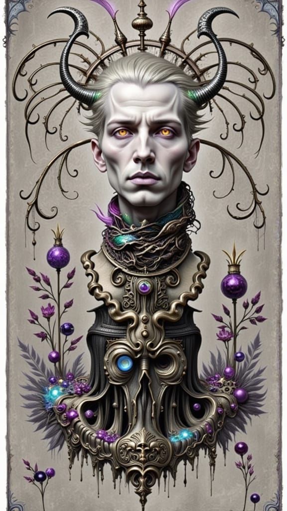This surreal, hyperdetailed portrait features a male DJ in a cyberpunk aesthetic with vivid, bioluminescent fantasy and gothic elements, enhanced with neon highlights.