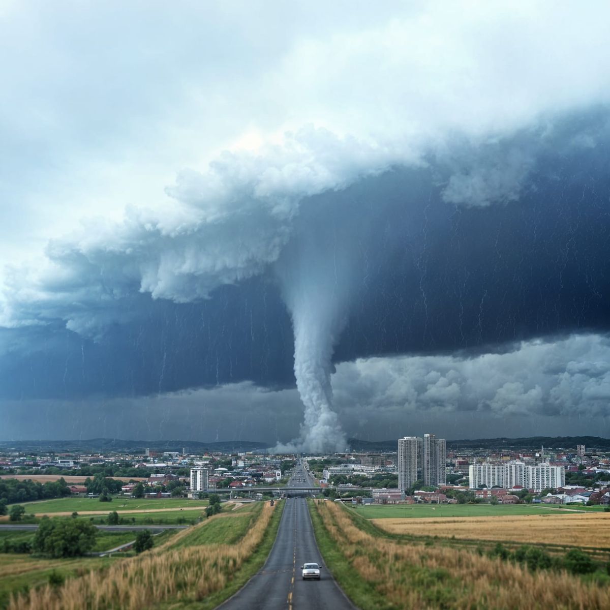 Easily generate your own images of massive tornadoes sweeping through cities with our free AI image generator. No expertise needed!