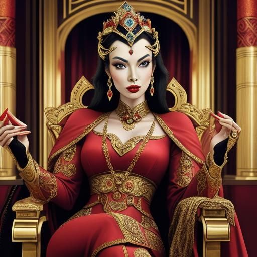 A portrait of Princess Aura in an opulent art deco environment. The image showcases the character in a setting that emphasizes luxury and geometric design.