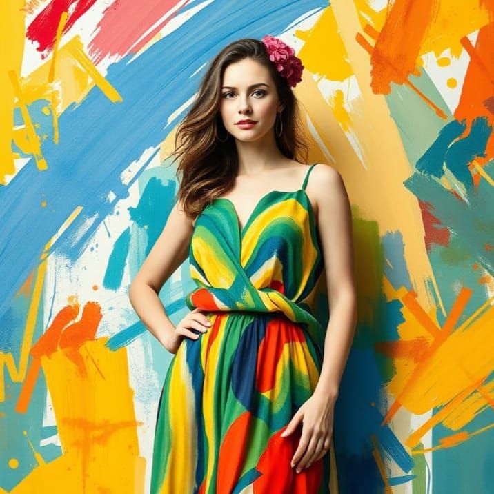 A digital portrait of a woman with heterochromia. The image shows a stylized depiction with bold colors and strong lines, in a contemporary digital art style.