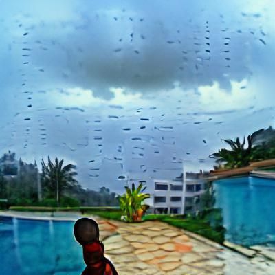 This image depicts the result of an AI's interpretation of the classic children's rhyme. It's a whimsical and potentially literal representation of the request for rain to stop.