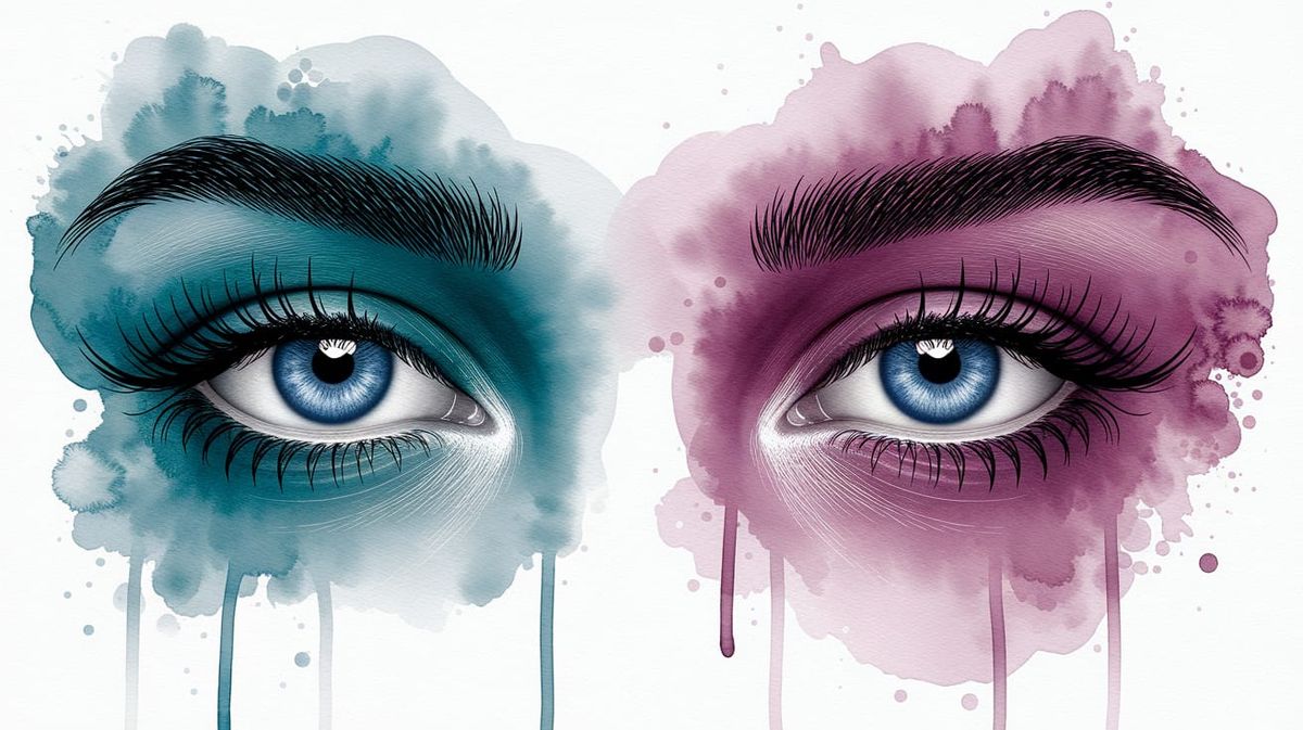 Elegant Ink and Watercolor Portrait with Deep Blue Eyes