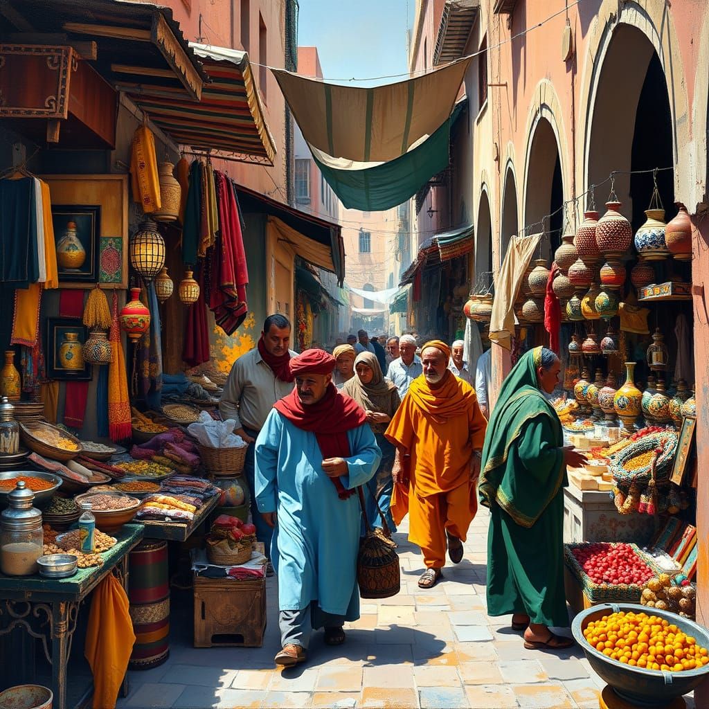 Easily generate your own Moroccan marketplace images with our free AI image generator, featuring merchants and traditional clothing