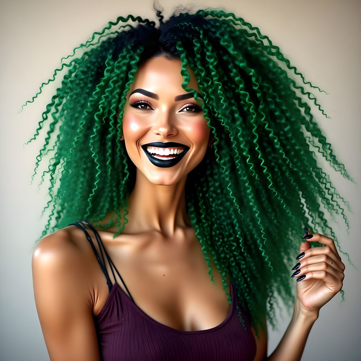 Easily generate stunning portraits with vibrant green hair using our free AI image maker