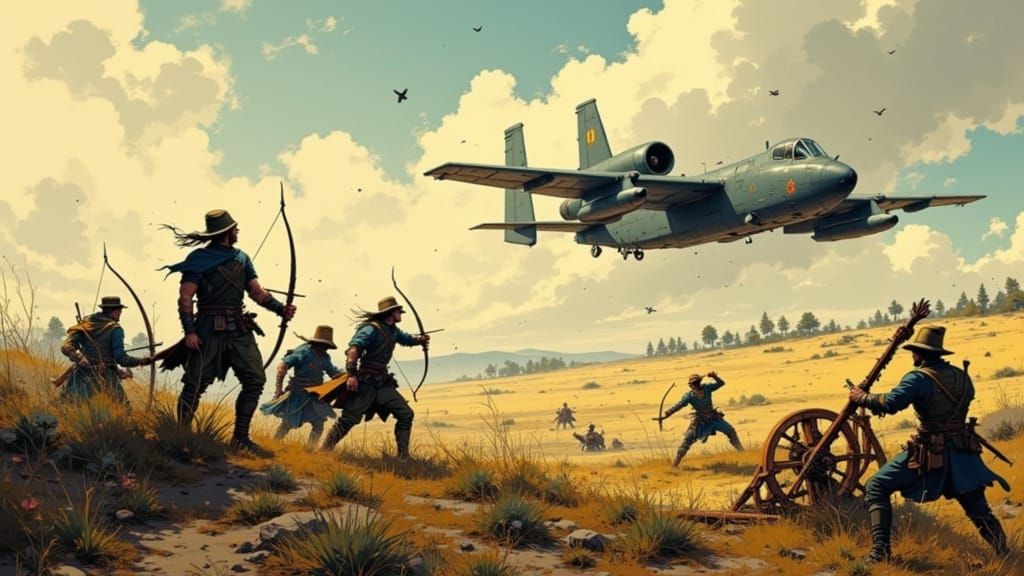 Unleash your imagination! Create epic 'Merging Wars' scenes with our AI image generator, free and easy to use.