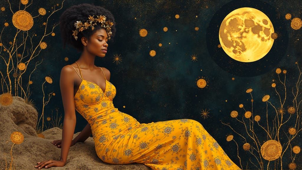 Theoretical Image Perfection African Goddess Fantasy Kintsugi Moonlight Gustav Klimt