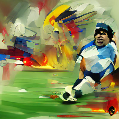This image depicts an abstract concept of Diego Armando Maradona. The artwork captures the essence of the iconic figure through symbolic representation and artistic interpretation.