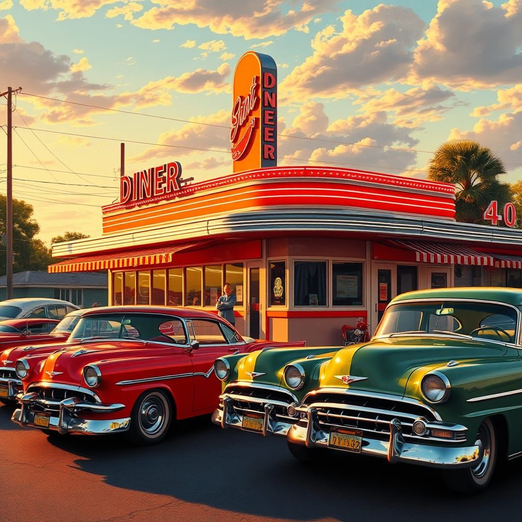Create your own retro Americana images. It's free and easy to generate stunning 1950s-style scenes with AI.