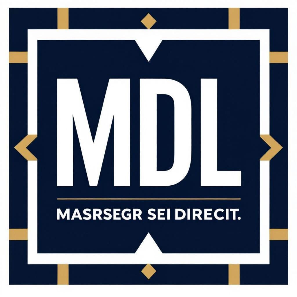A minimalist flat vector logo with a dominant monogram 'MDL' in navy and charcoal. Below, 'Management. Direct. Logistic. Services LLC' appears in a smaller, clean sans-serif font, centered on a white background.