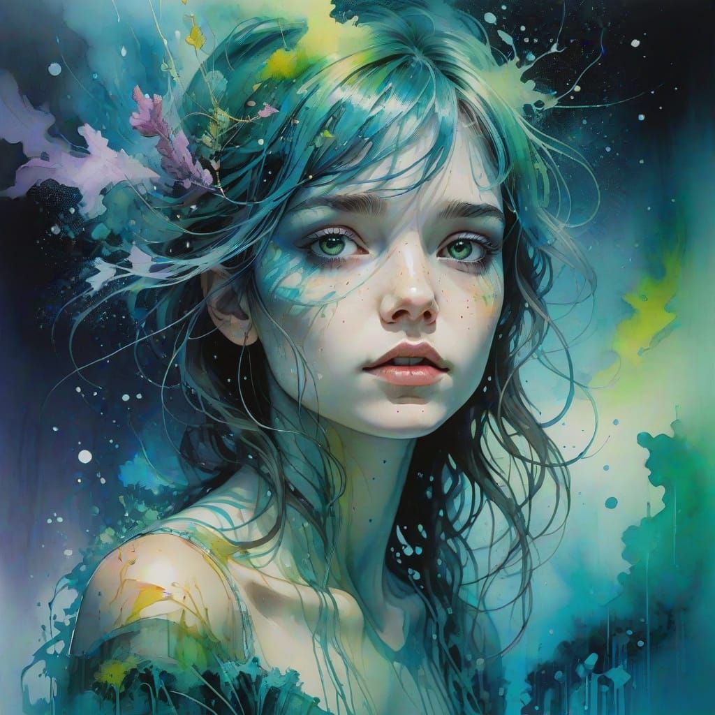 A mesmerizing display of bioluminescent plankton creating an underwater aurora. This image showcases glowing marine life in an ethereal, colorful spectacle with soft lighting and a grunge color gradient aesthetic.