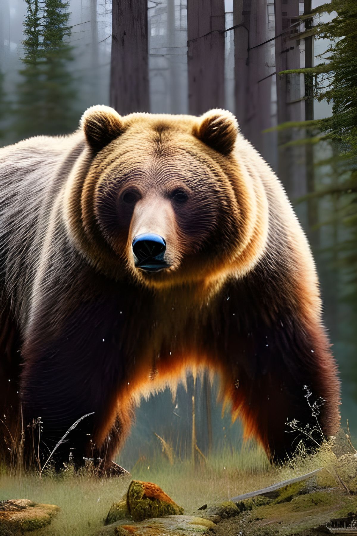 A striking picture of a mother grizzly bear with her cub. The image showcases intricate details, flawless eyes, and hyperrealistic fur, rendered as digital art.