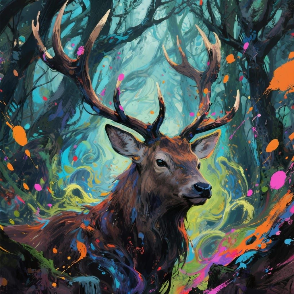 Portrait a Stag Genuine Stag portrait of Mysterious Stag swirling forest !! :: breathtaking Stag cover art Artwork, perfect 32 k by 88, Jon Foster, JK Carne Griffiths, Camilla D'Errico, Jean Baptiste Monge, Guweiz, insanely detailed, speedpaint with large brush strokes and paint splatter, triadic colours, ...