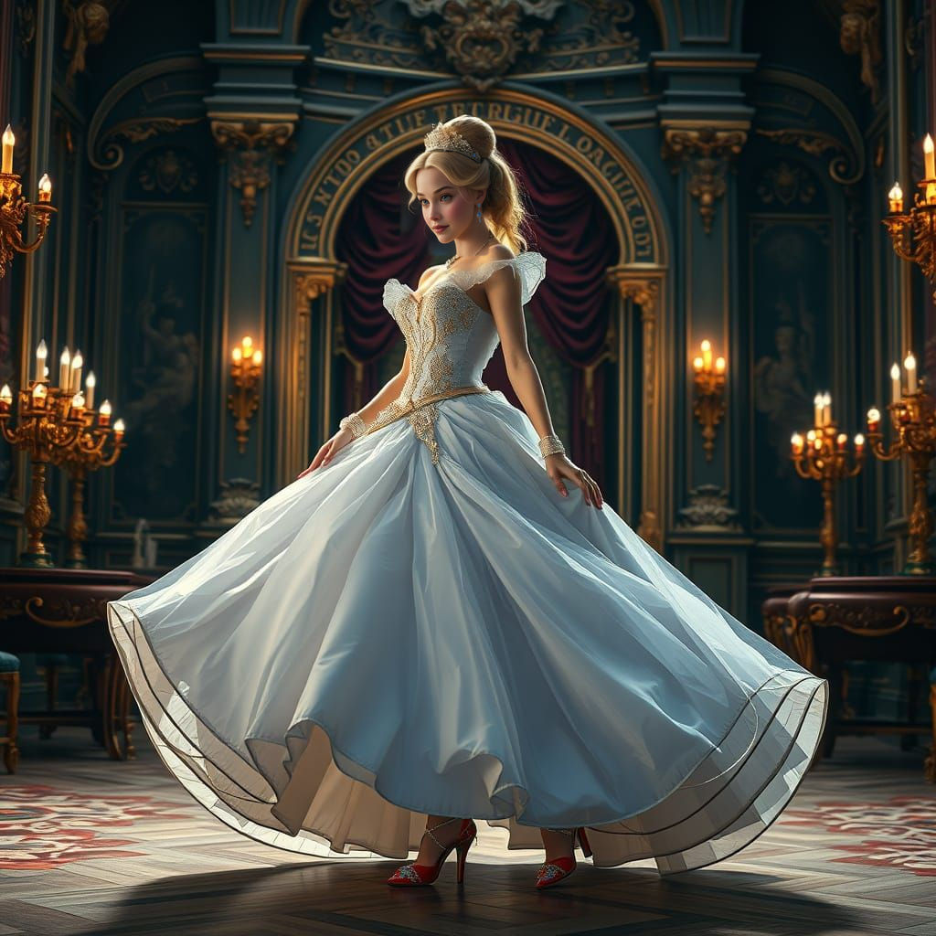 This image shows a Disney-style portrait of Princess Cinderella in a modern and alluring outfit. The hyperrealistic rendering features vibrant colors, intricate details, and a cinematic quality.
