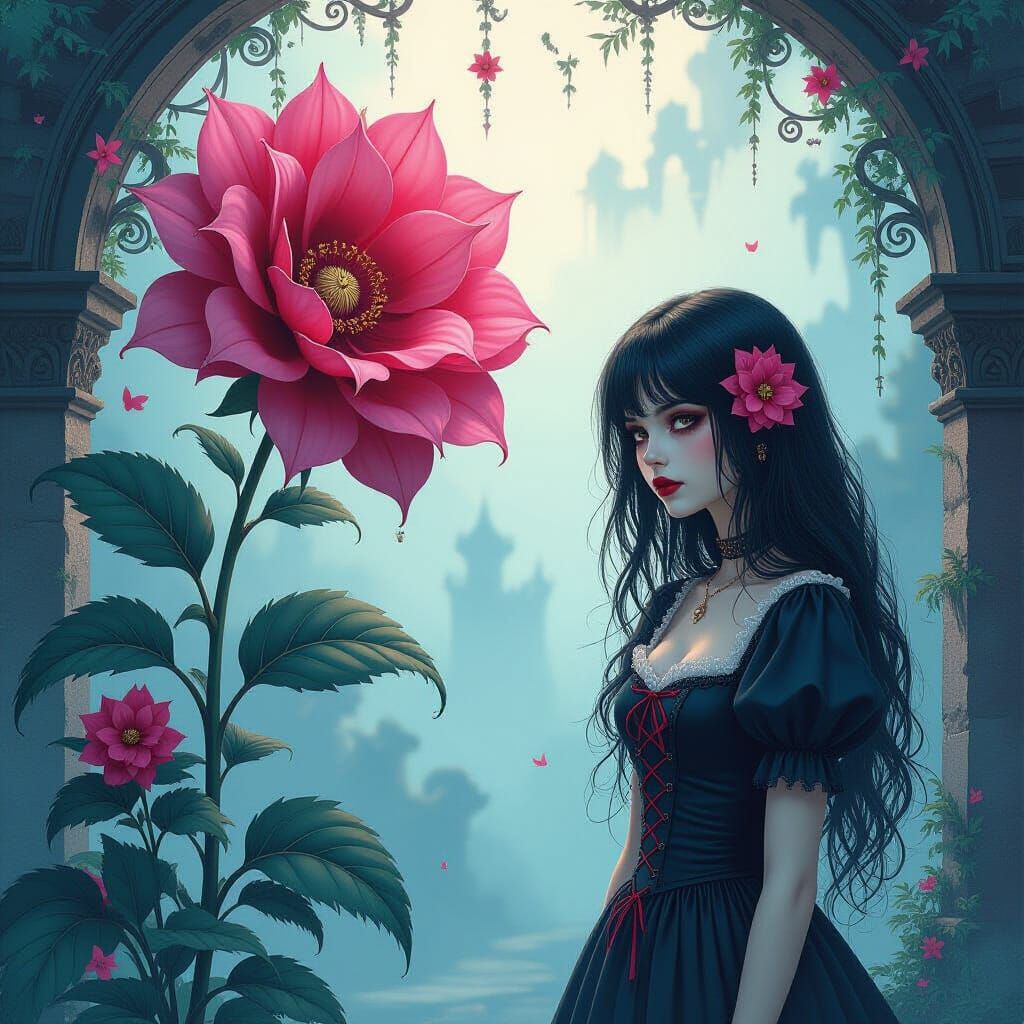 Easily generate unique goth girl and mysterious flower images with our free AI art tool. Unleash your creativity!