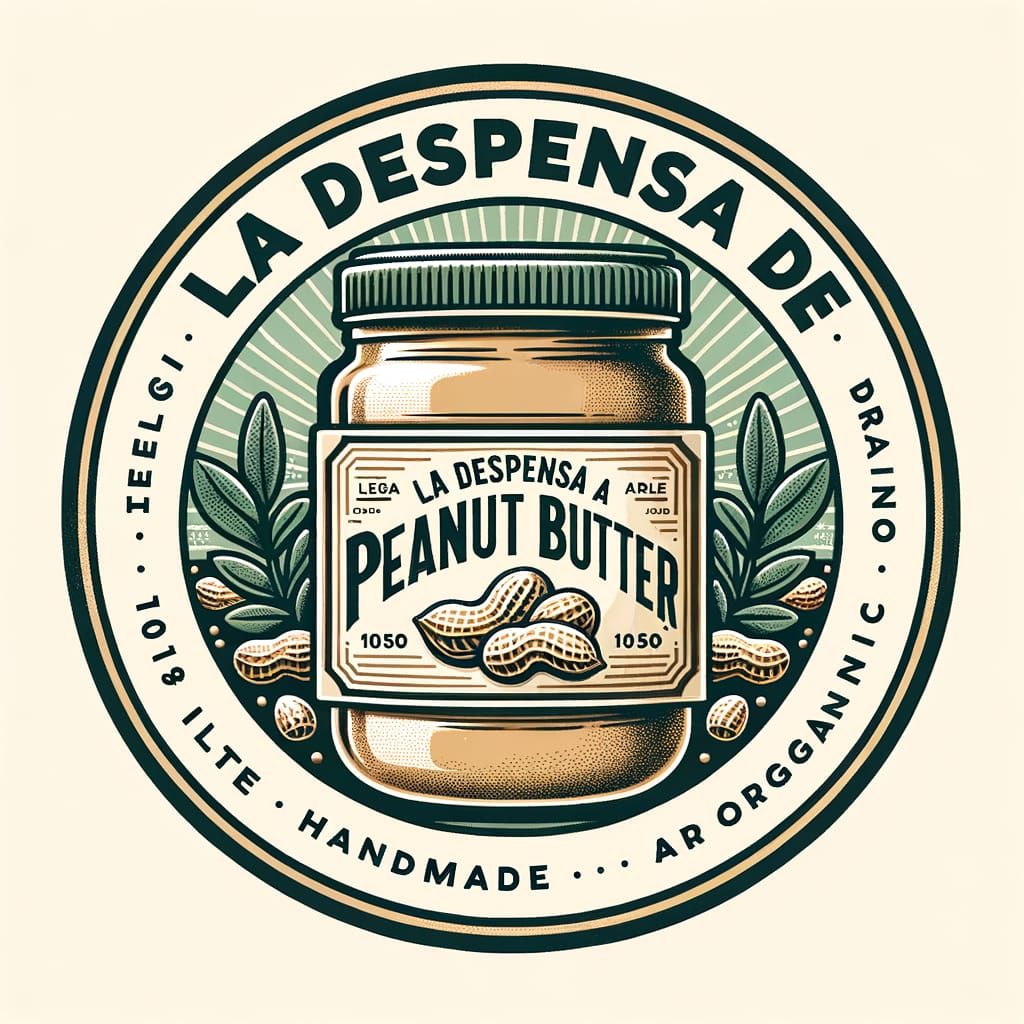 A rustic-modern logo for healthy peanut butter brand 'La Despensa de Arlet'. Features a glass jar with peanut butter, subtle leaves, and a circular format in sage green and earth tones.
