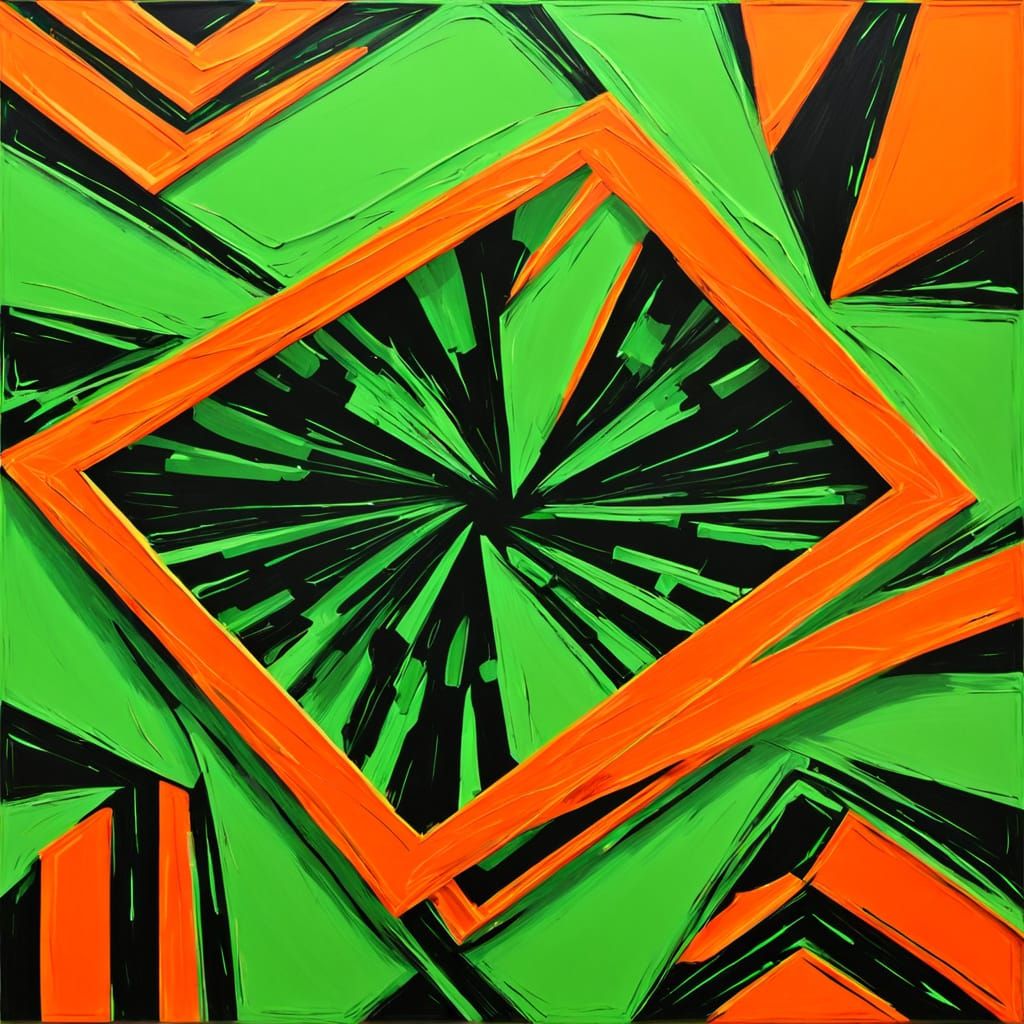 Neon orange and neon green, 3d, high contrast, acrylic abstract painting,