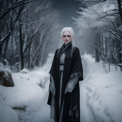 This image showcases a terrifying, real-world photograph of Grayfia Lucifuge as a Yuki Onna. The chilling portrayal evokes a sense of fear and unease.