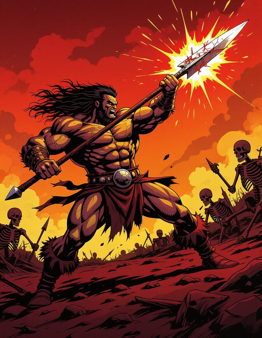 A muscular barbarian unleashes a brutal, bio-energized strike against a mutated foe in this high-contrast comic book cover. Features kinetic action and a chaotic, scorched earth background.