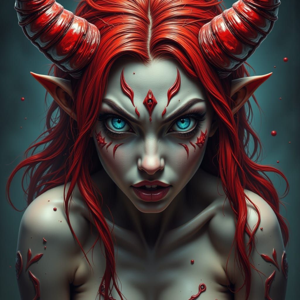 This image shows a woman in a furious scream, with wild hair and intense facial expression. Dramatic volumetric lighting and triadic colors enhance the raw emotion, rendered in a detailed surrealist style.