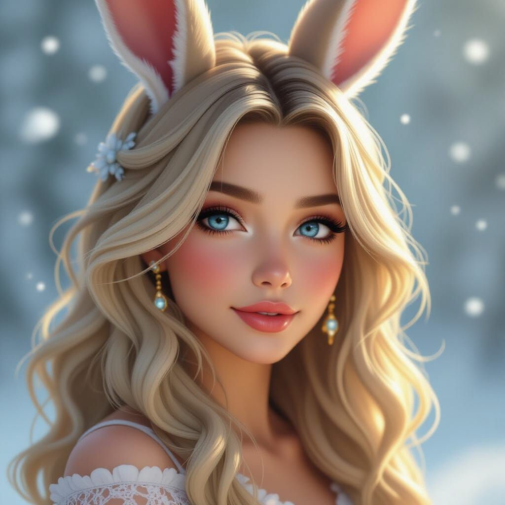 This image shows a stunning portrait of a blonde woman with blue eyes. The artwork features dynamic lighting, intricate details, and a vibrant color palette, reminiscent of Art Nouveau.
