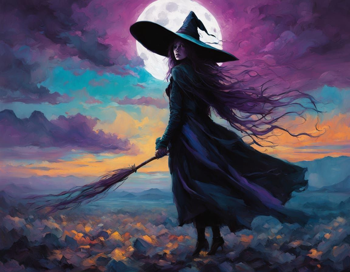 Generate your own magical witch scenes with our free and easy AI image generator. Fly with your own witch!