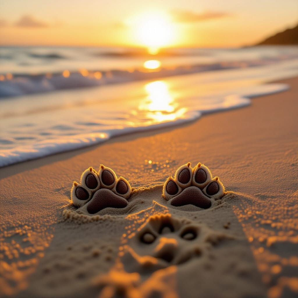 Create your own beautiful beach scenes with paw prints using our free AI image generator.