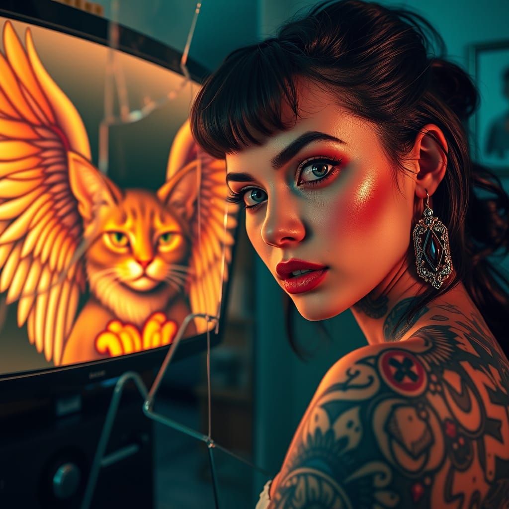 A stunning close-up portrait of a supermodel, rendered in hyper-detailed digital illustration with a vibrant, cinematic style reminiscent of comic books and anime