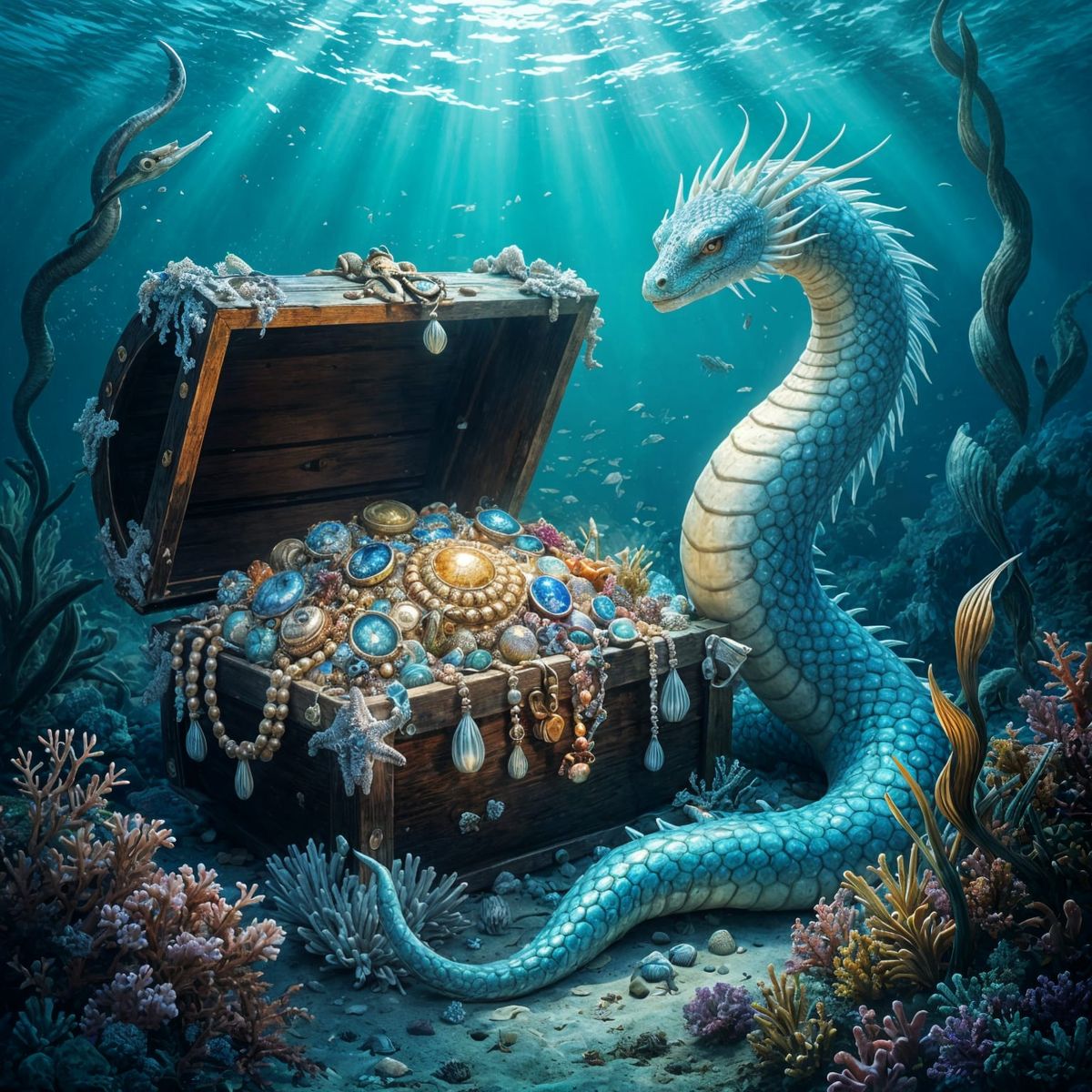 Easily generate unique underwater treasure scenes with our free AI image generator. Guarded by magical sea serpents!