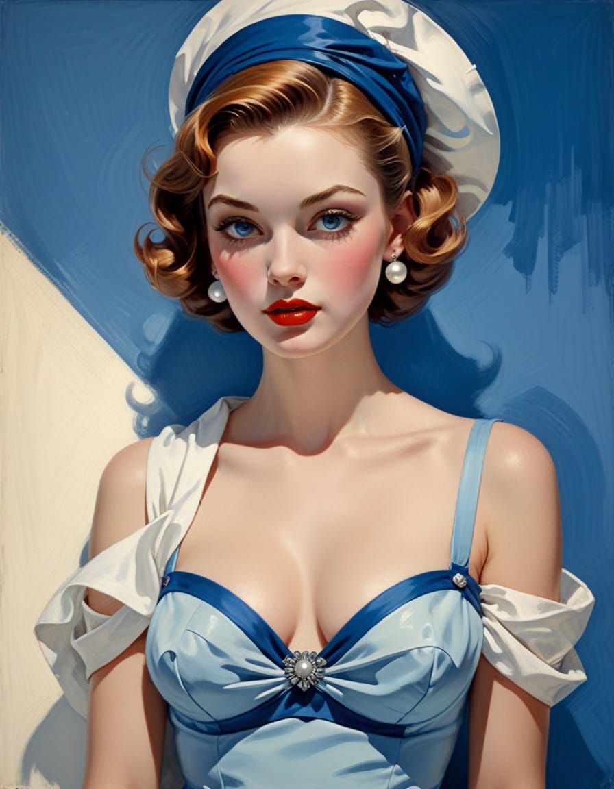 Create your own blue and white pin-up art in the style of famous artists. It's free and easy!