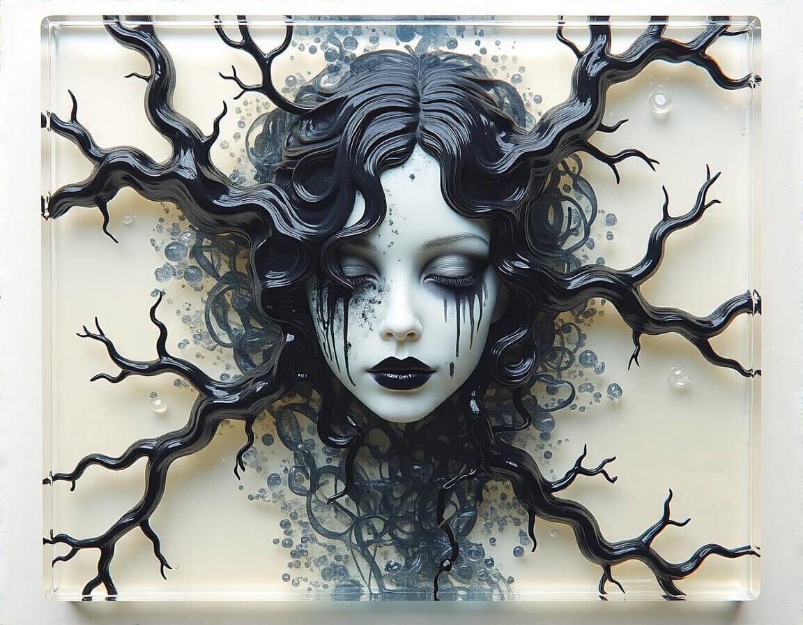 semi-transparent intricately carved gelwave dutch pour none of my tricks work on you no matter what I do cell lacing transparent resin acrylic wash liquified artifacticious remnants of the neglected few sent to liquify dreams idoleyes chicshadowcolorwaygradient you're the only one I want to fool blackvelvet ...