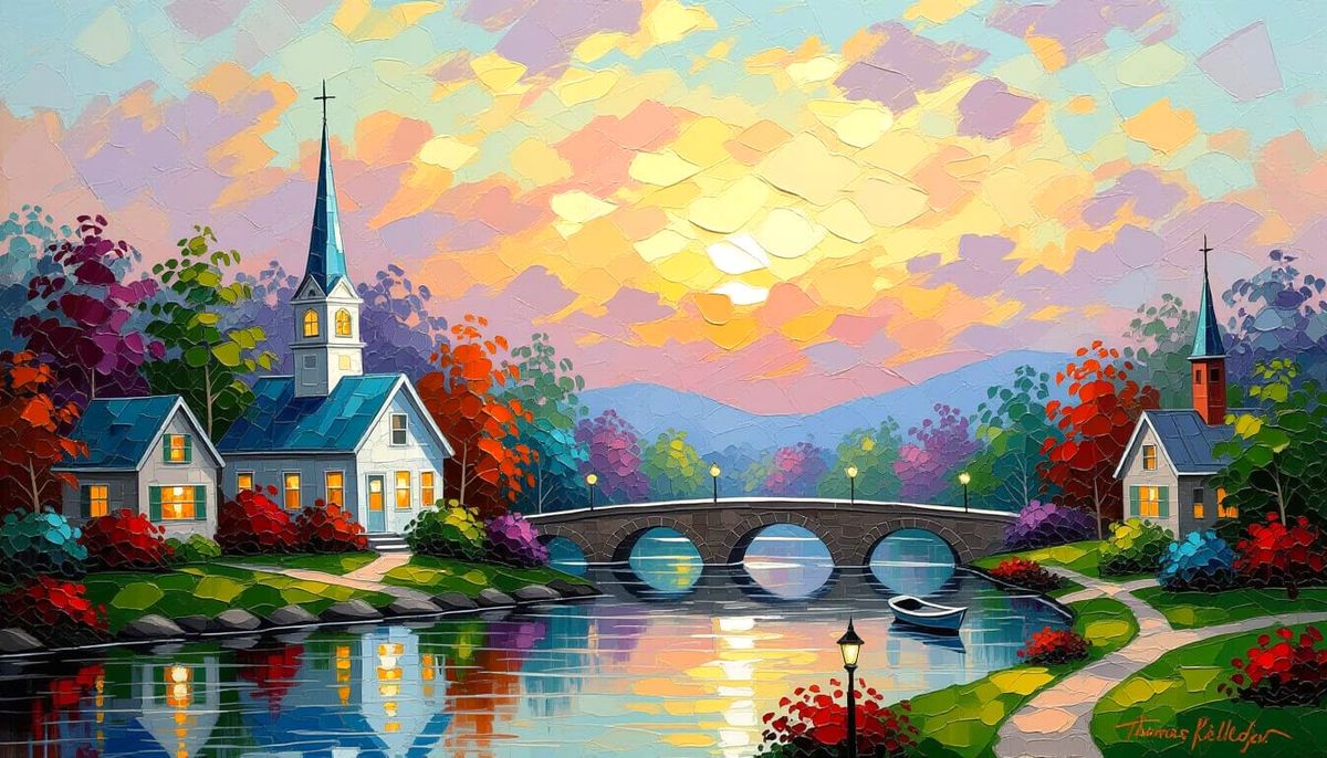 Create your own artistic visions with our free AI image generator. Get inspired by impasto, mixed media, Belledin, and Kinkade!