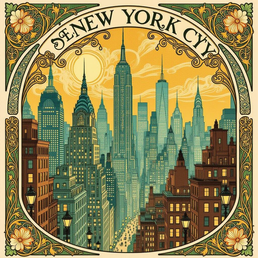 Art Nouveau Poem I'm in City New York I'm in this city, feeling so alive Every corner, stories to derive New adventures waiting, just around the bend In this concrete jungle, I can make a friend Sanja Zivkovic 😊
