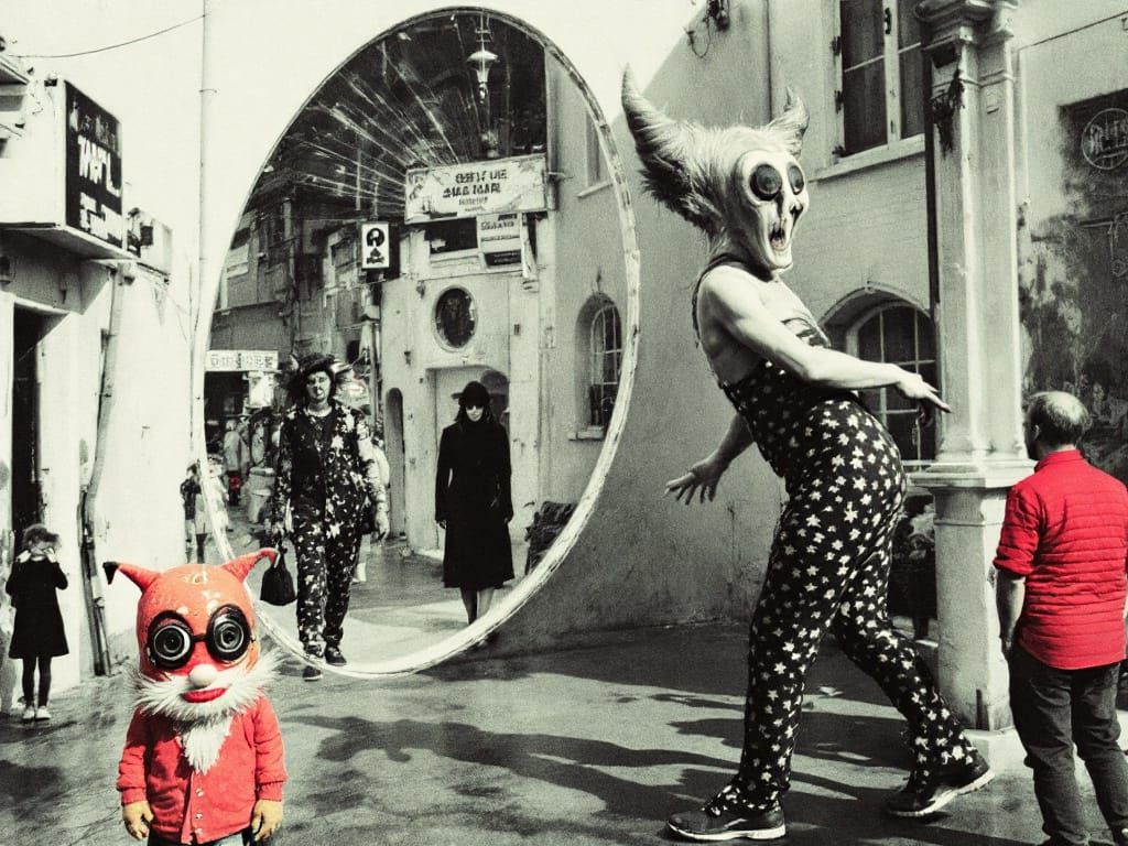the wacky sinister skewed refracted overlapped contorted soft parade situationist photography by bobby neel adams, fuzzy wacky contortionist goober lunatics from neighborworld, the woim toins in the thinless d'onofrios bonkers situationist photography of the crocus behemoth screwtape by yim man-hyeok, ...