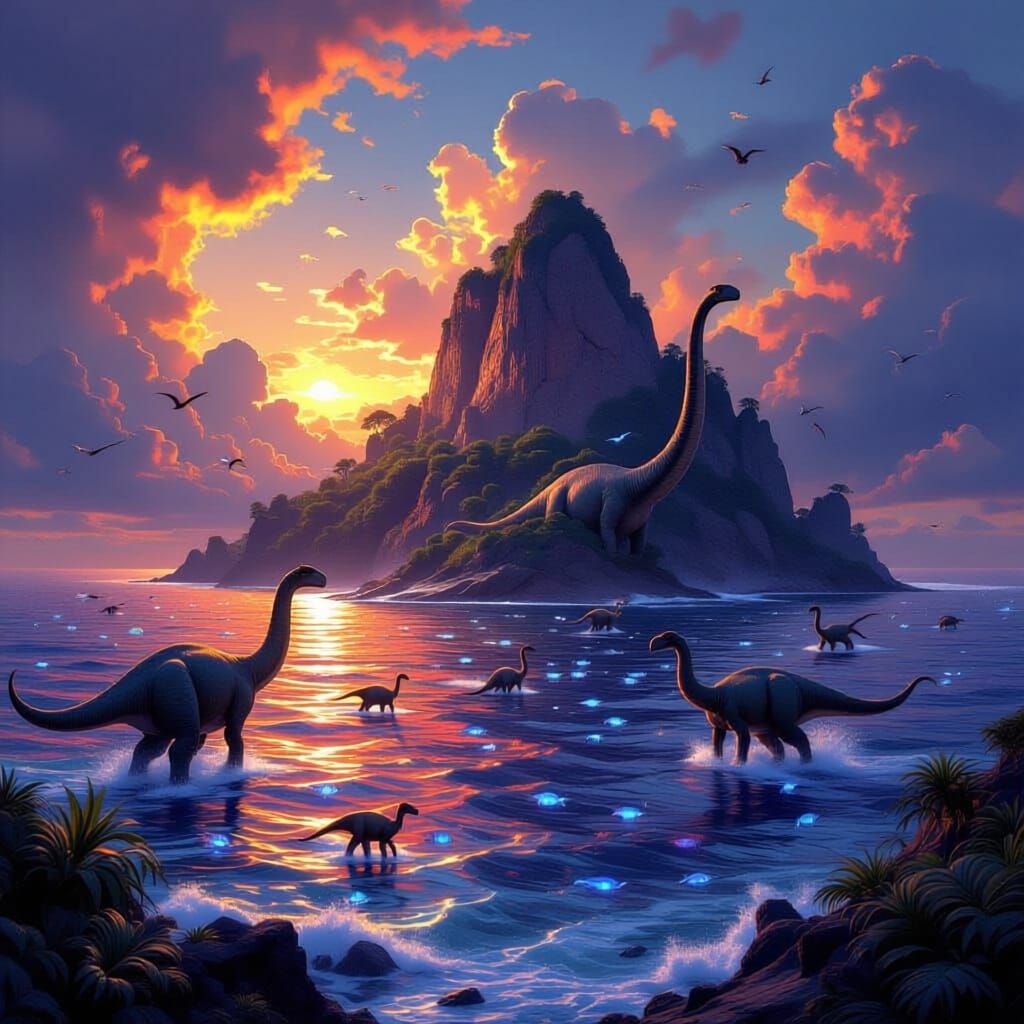 Easily generate your own majestic Jurassic island scenes with unique animals using our free AI image generator.