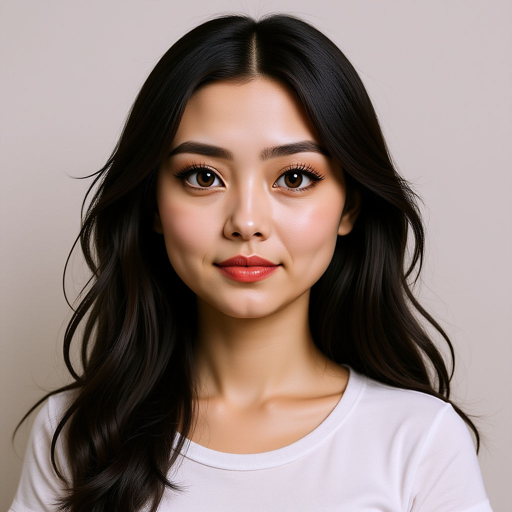 A cartoon-style illustration of a woman with long black hair and clear eyes against a white background. The artwork evokes the style of Disney and Pixar with vibrant colors and delicate lines.