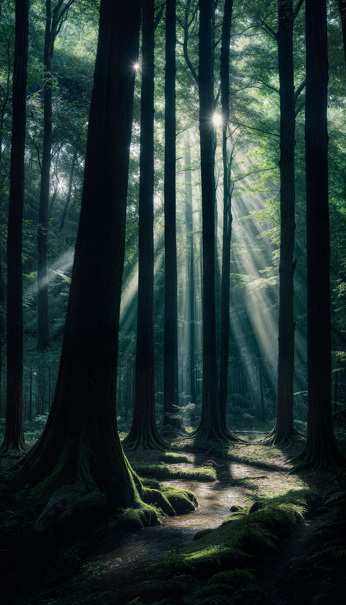 Generate unique images of dark, cold forests with sunbeams. Try our free AI image generator for stunning results.