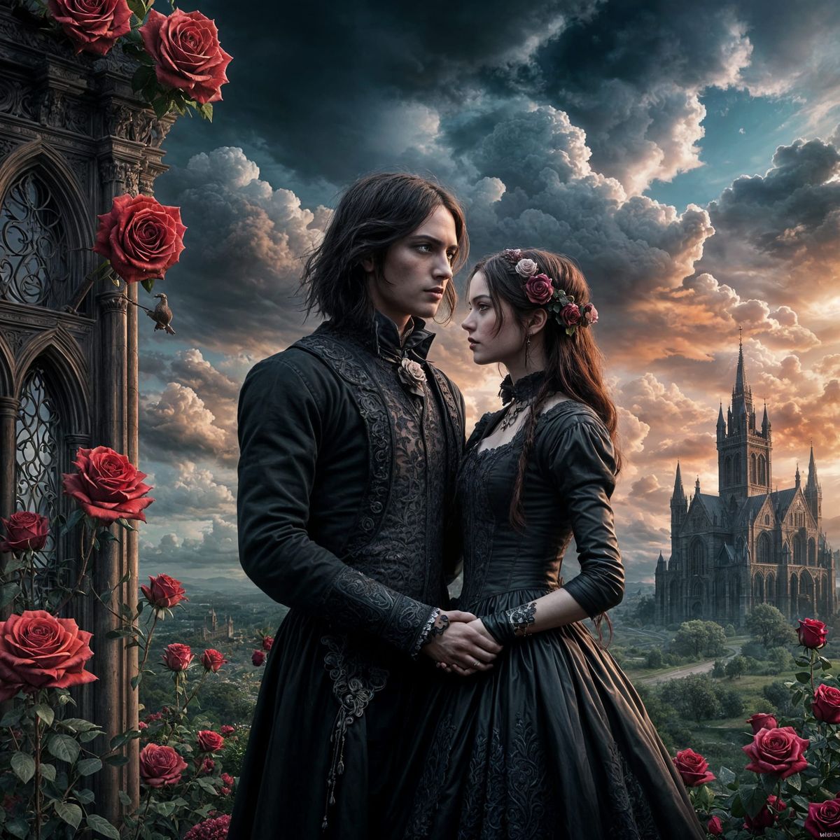 Easily create your own gothic romance images with roses and beautiful skies using our free AI image generator