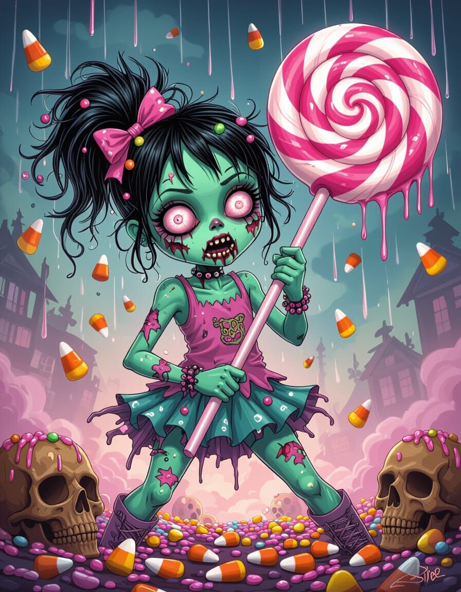 Generate unique zombie girl images with AI. Easy, free, and fast. Customize your own candy-themed horror creations now!
