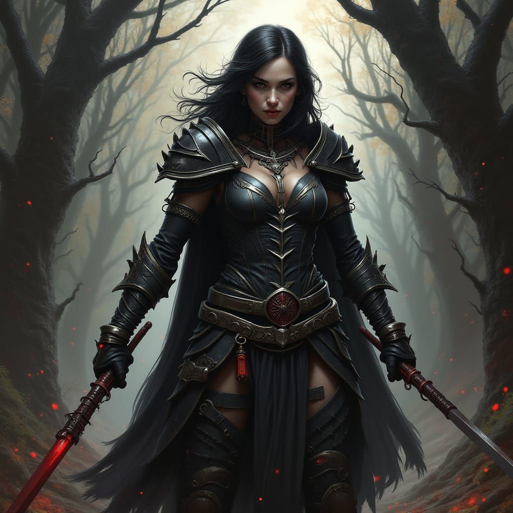 This image depicts a scene in the grimdark style. It captures a dark and gritty aesthetic, emphasizing decay and despair through its visual elements and color palette.