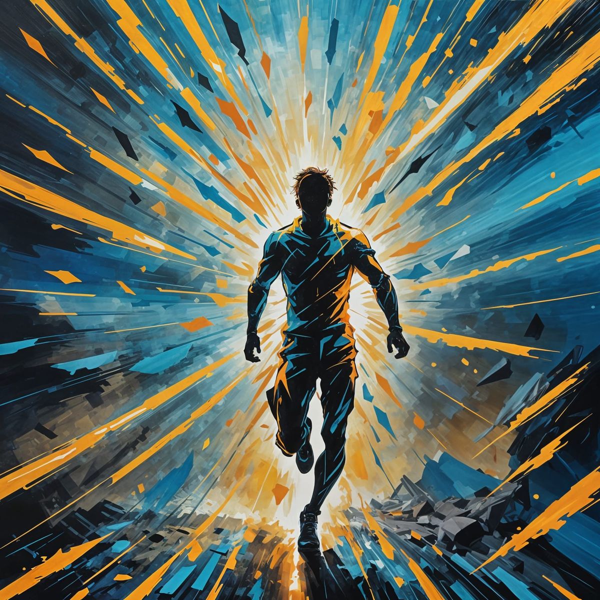 A vibrant image symbolizing positivity and motivation. The artwork shows a silhouette of a person exercising against a backdrop of abstract elements and bright colors, as a detailed matte painting.