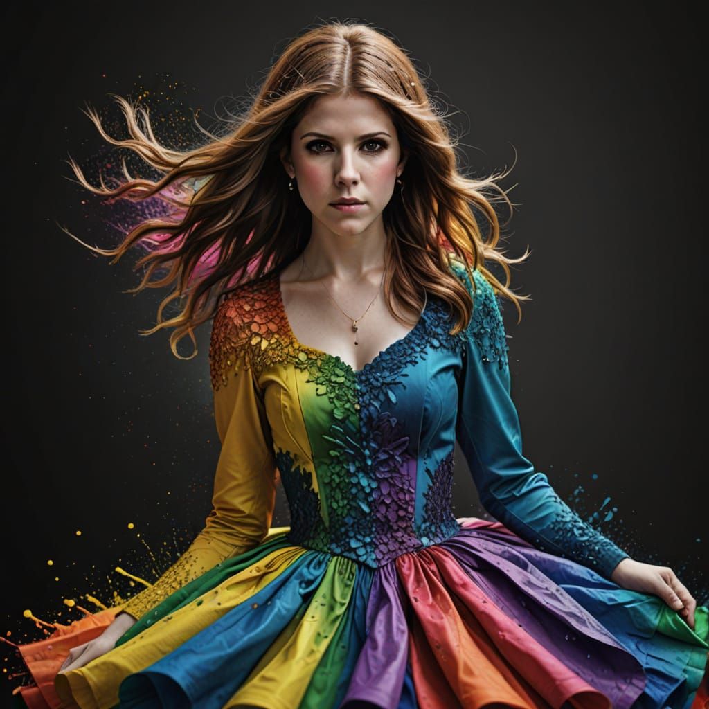 This image showcases Anna Kendrick in a vibrant, hyperrealistic color splash art, featuring intricate details and a perfect composition.
