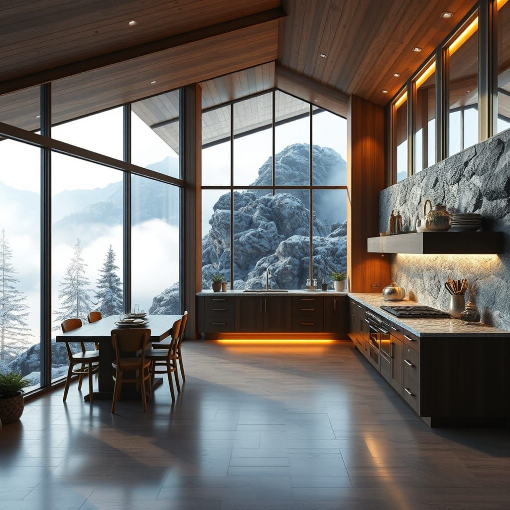 Generate stunning, realistic interior and exterior views of mountain kitchens with our free AI tool. Easy and fast!