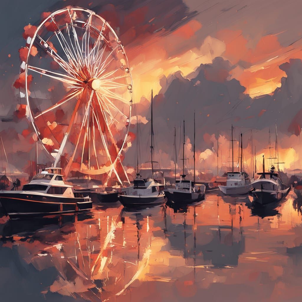 Easily create your own panoramic fairground sunset images with our free AI image generator.