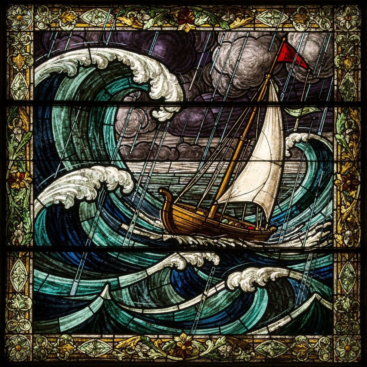 Craft your own stunning stained glass art, featuring elements like wind, rain, and sailing ships. Free and easy to use!