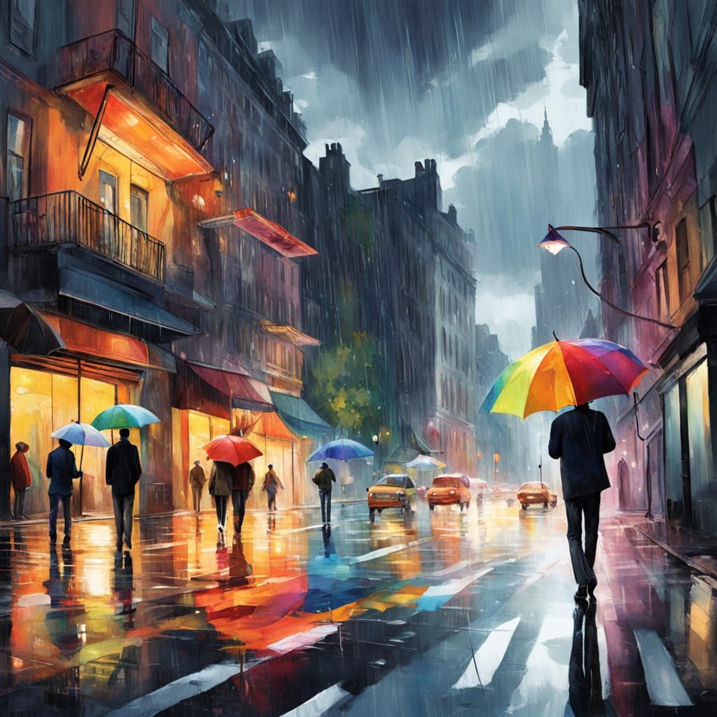 Generate your own colorful rainy street scenes with AI. Free, fast, and easy to use. Try it now!