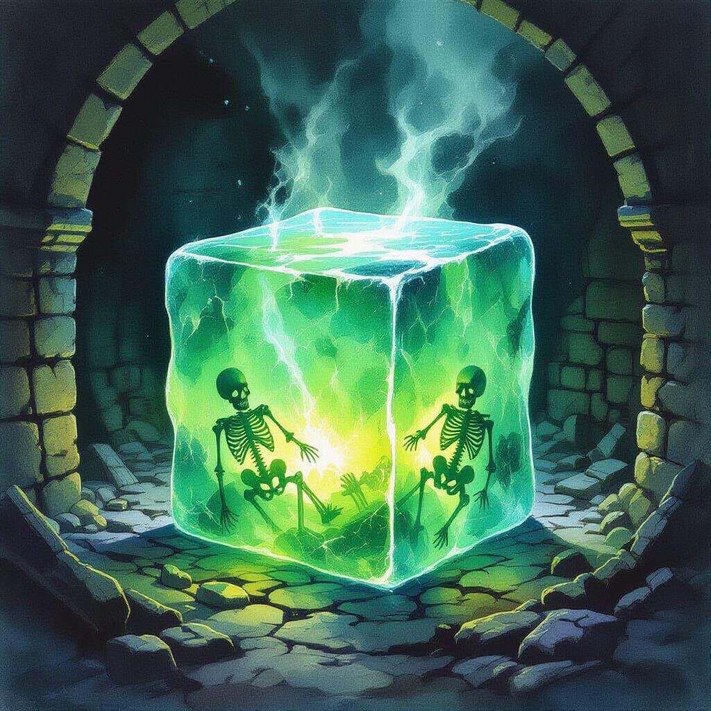 Easily generate unique watercolor paintings of gelatinous cubes and dungeons with our free AI tool.