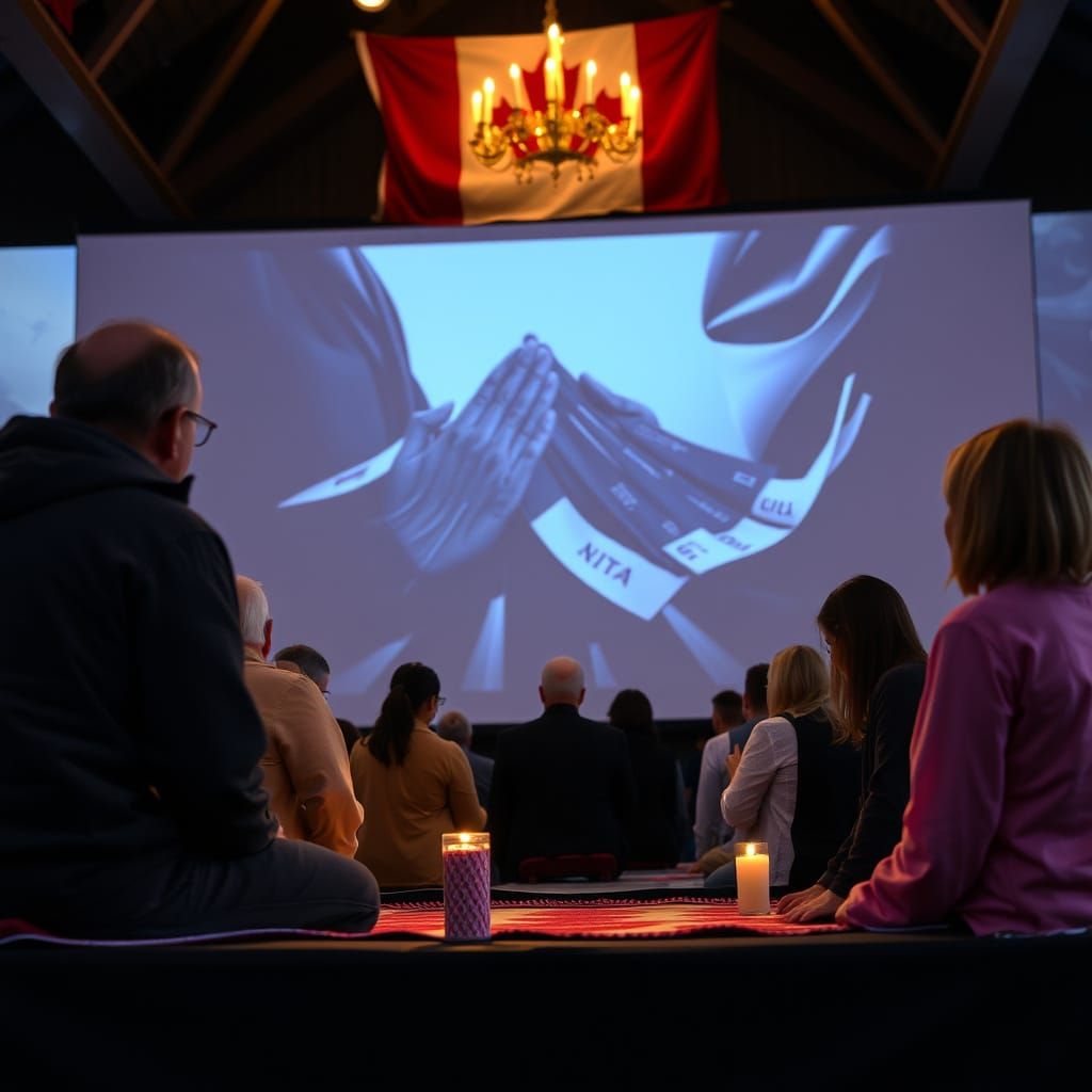 A poignant image of Americans praying towards Canada, highlighting the themes of unity, hope, and cross-border connection.