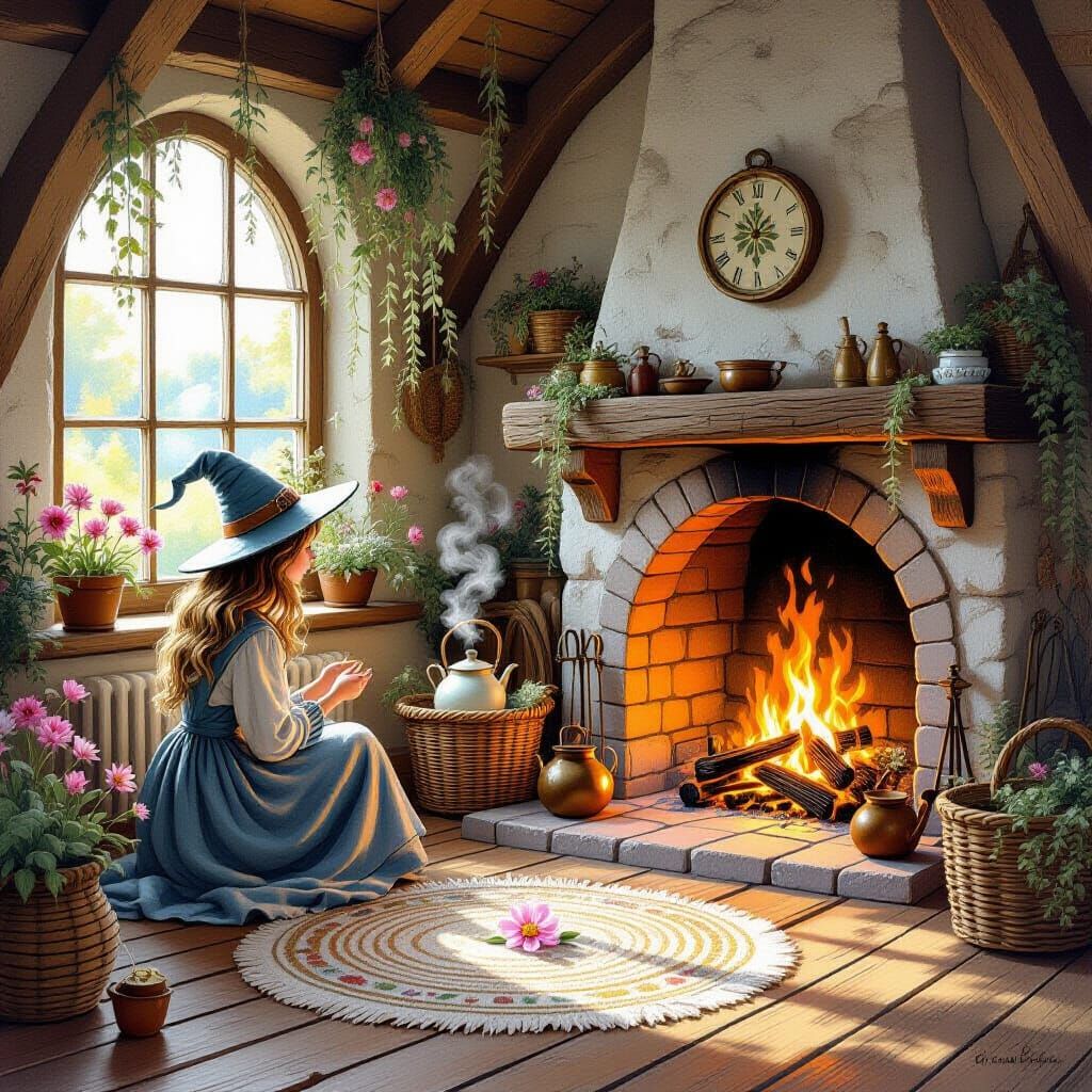 Generate magical witch cottage interiors and cozy scenes with our free AI image generator. Easy and fun!