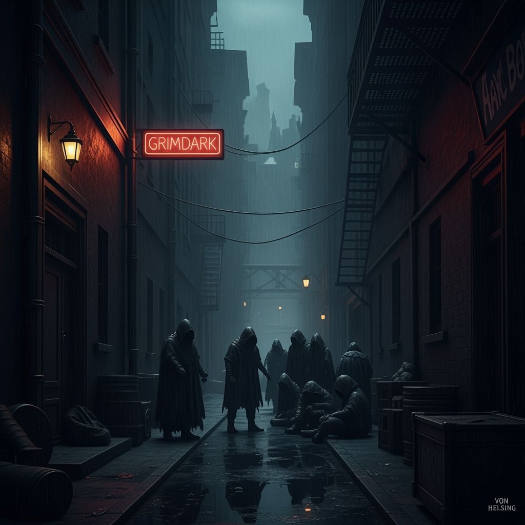 This image evokes a grimdark aesthetic. The photograph captures the essence of a dark and gritty world, emphasizing shadows and muted tones to create a sense of foreboding.